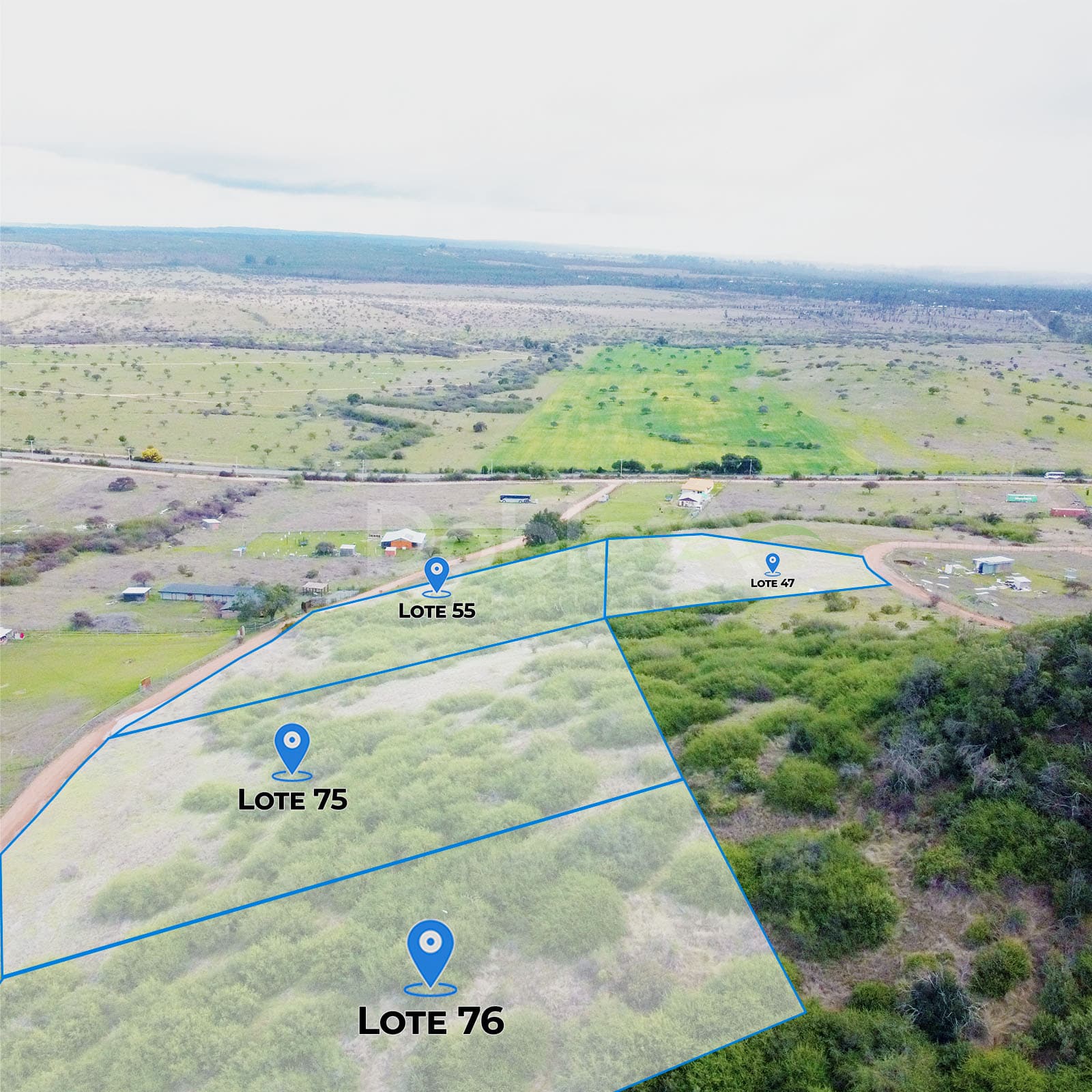 - Situación legal: Parcelas con roles individuales, listas para escriturar e inscribir en el Conservador de Bienes Raíces de Litueche.